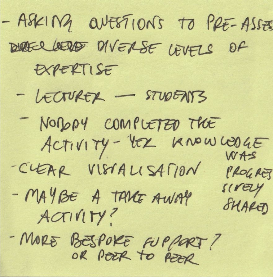 Today’s session was an interactive presentation on the up and coming observational (peer to peer) teaching practices. As we have to define and provide our tutor and peers a couple of dates to visit one of our teaching sessions, we’ve also read a case study prompting a following discussion. I joined the following topic, question and discussion: